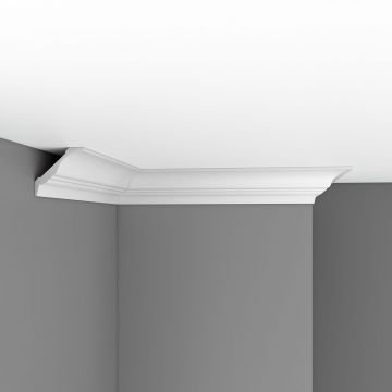 - Размеры: 100х105х2400 мм, что позволяет легко установить плинтус на потолок любого помещения, придавая ему законченный вид.